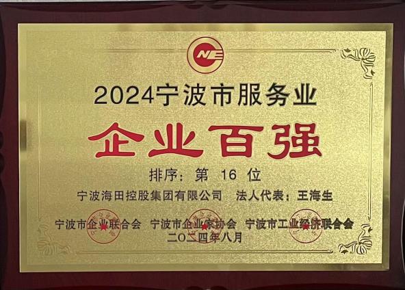 寧波海田控股集團已連續多年上榜,此次憑借營業收入1076393萬元的成績獲得寧波市服務業百強企業第16位、寧波市綜合百強企業第51位,綜合實力較去年實現進位提升。