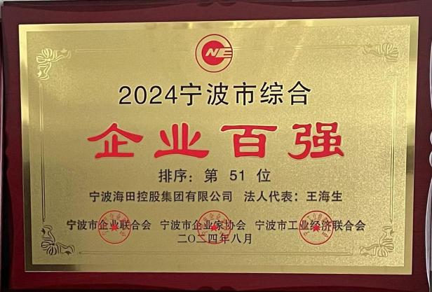 2024市企業百強榜發布 寧波海田控股集團榜上有名