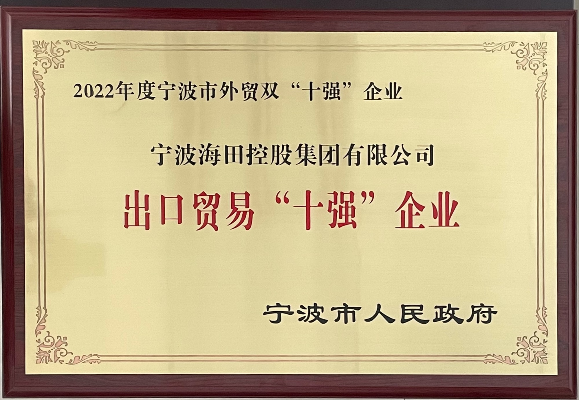 寧波海田控股集團榮獲2022年寧波市出口貿易“十強”企業