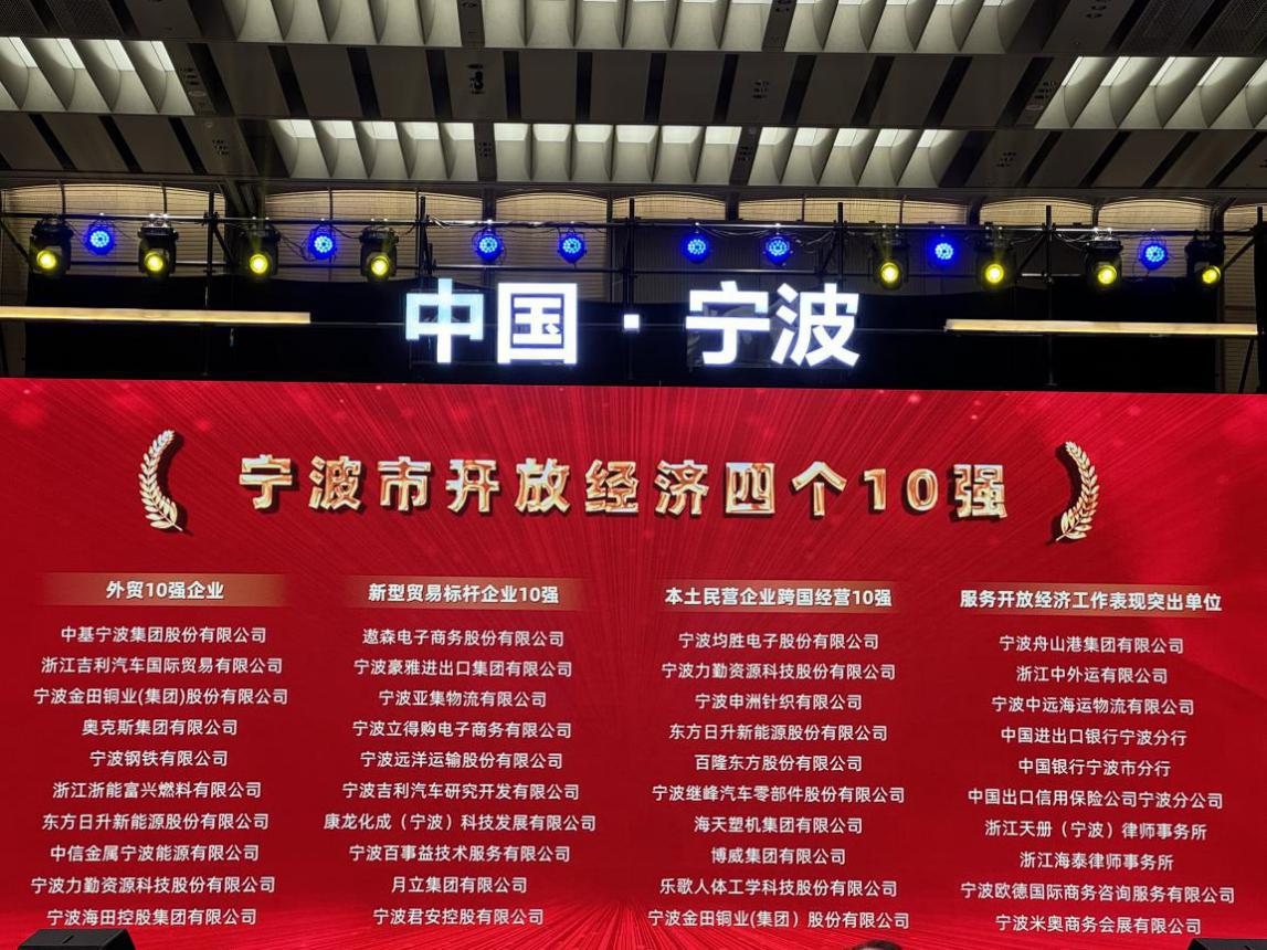 • 喜訊:寧波海田控股集團榮獲寧波市外貿10強企業